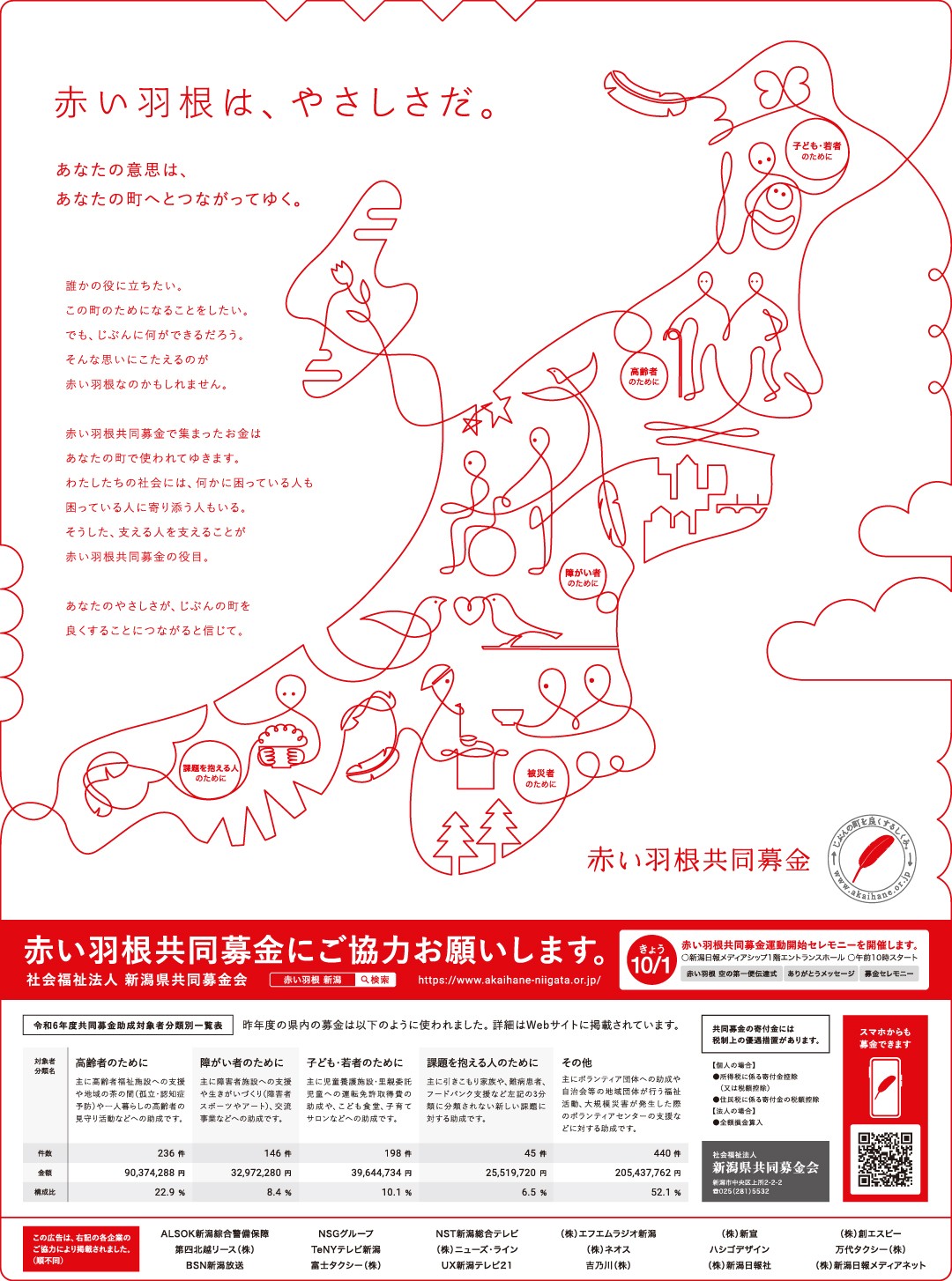 令和7年度共同募金運動が10月1日から開始されることに併せまして、下記の企業の皆様からご協力いただき、新潟日報朝刊に新聞広告を掲載いたしました。