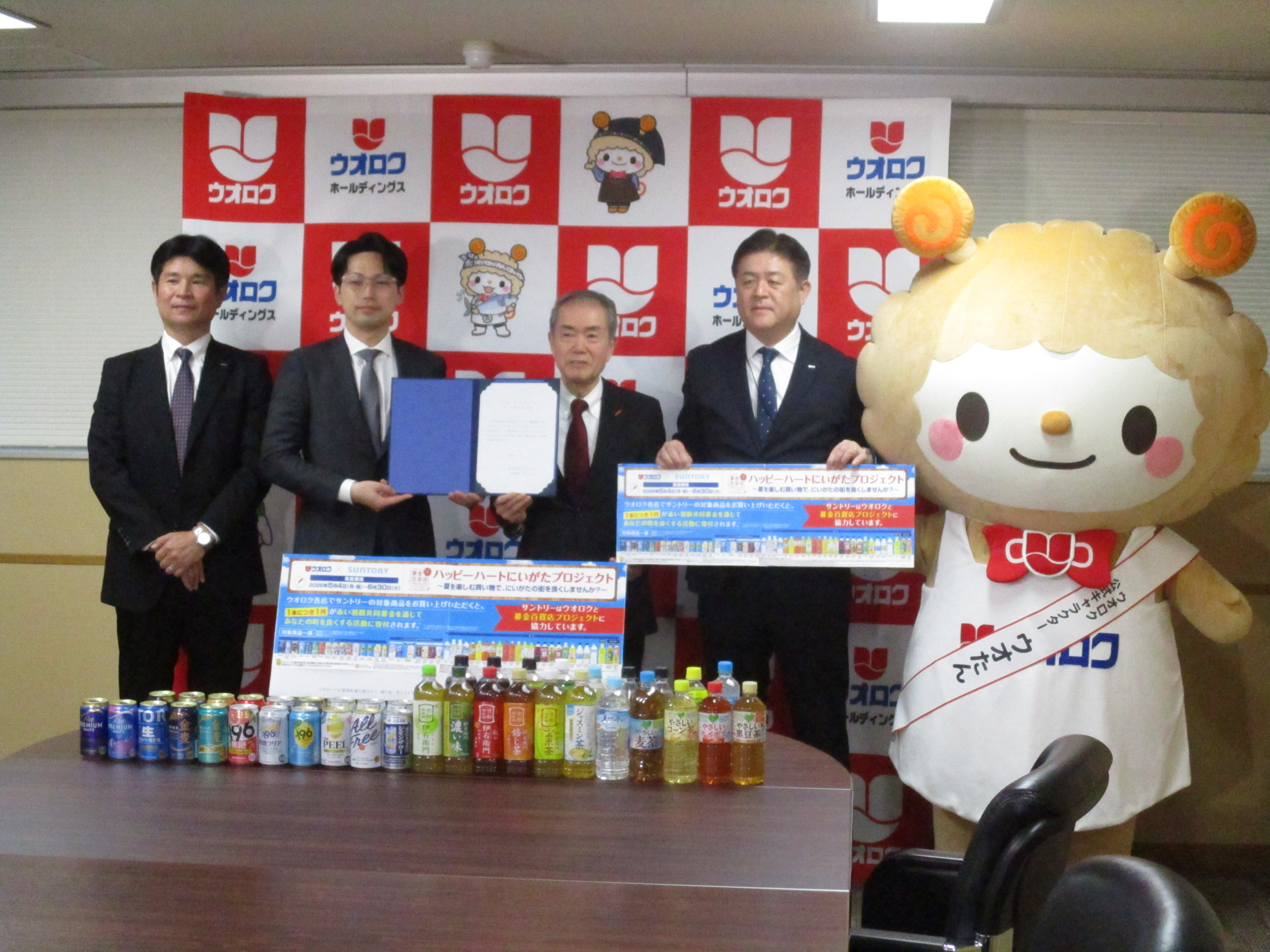 株式会社ウオロクホールディングス本社での発表式で株式会社ウオロクホールディングスの葛見久賢代表取締役は「製造・販売・支援の現場が一体となって地域に貢献する取り組みであり、今年も支援の輪を広げて全力で取り組みたいと思います。」と挨拶、プロジェクトの実施計画書を新潟県共同募金会の佐藤明会長に手渡しました。